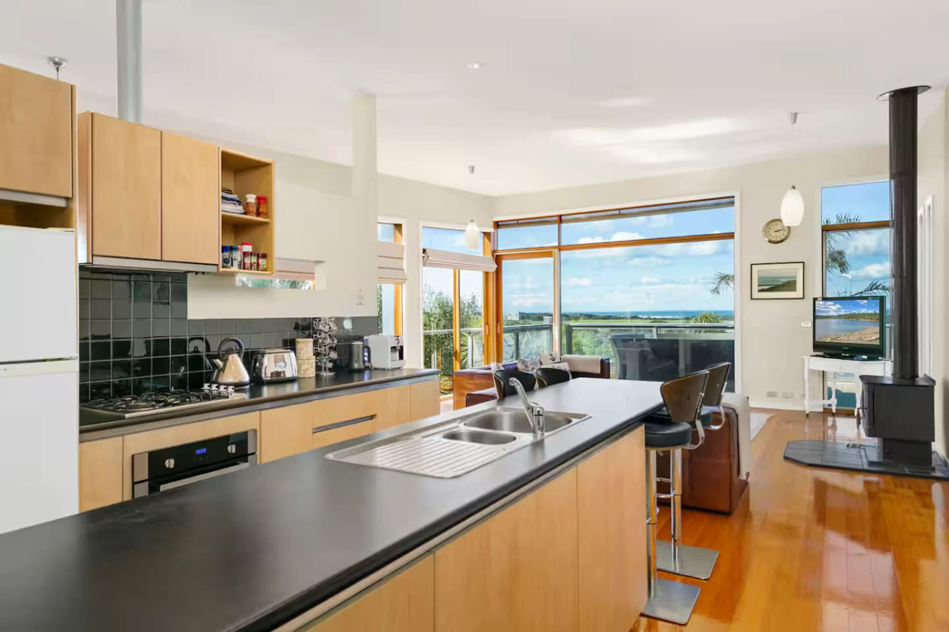 Bring the whole family to our great architecturally designed home with stunning sunrise views of the ocean in the distance. Our lovely home is the perfect family getaway, ideally set up for two families with bedrooms upstairs and downstairs for everyones private space plus a rumpus. If the local Jan...