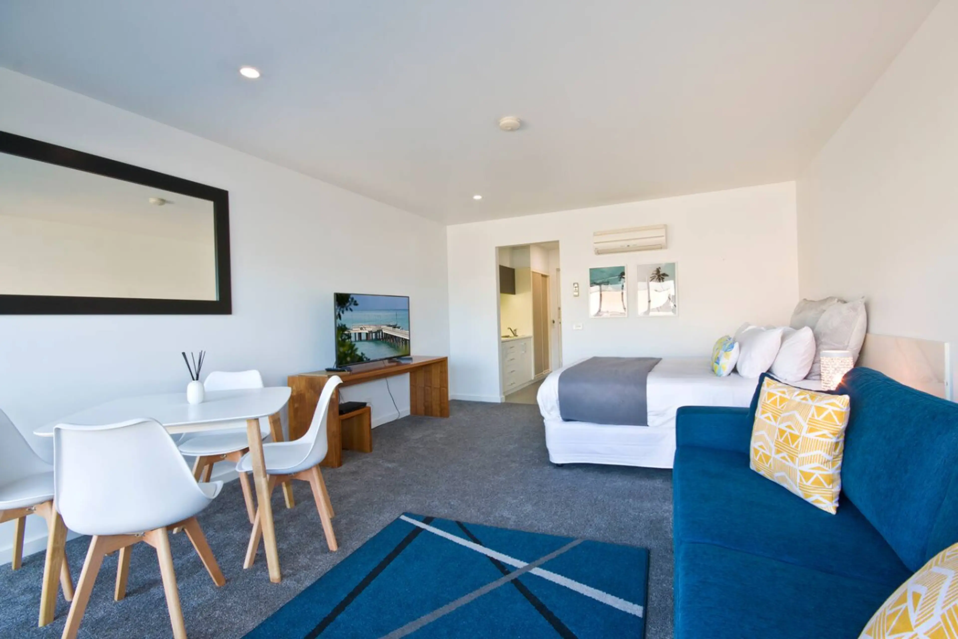 This accessible studio overlooks spectacular Louttit Bay in the heart of Lorne. The studio features ground level access, queen sized bed and sofa, as well as fully equipped bathroom with large, walk-in shower and support bars. The kitchenette includes a microwave and mini fridge. The studio is perf...