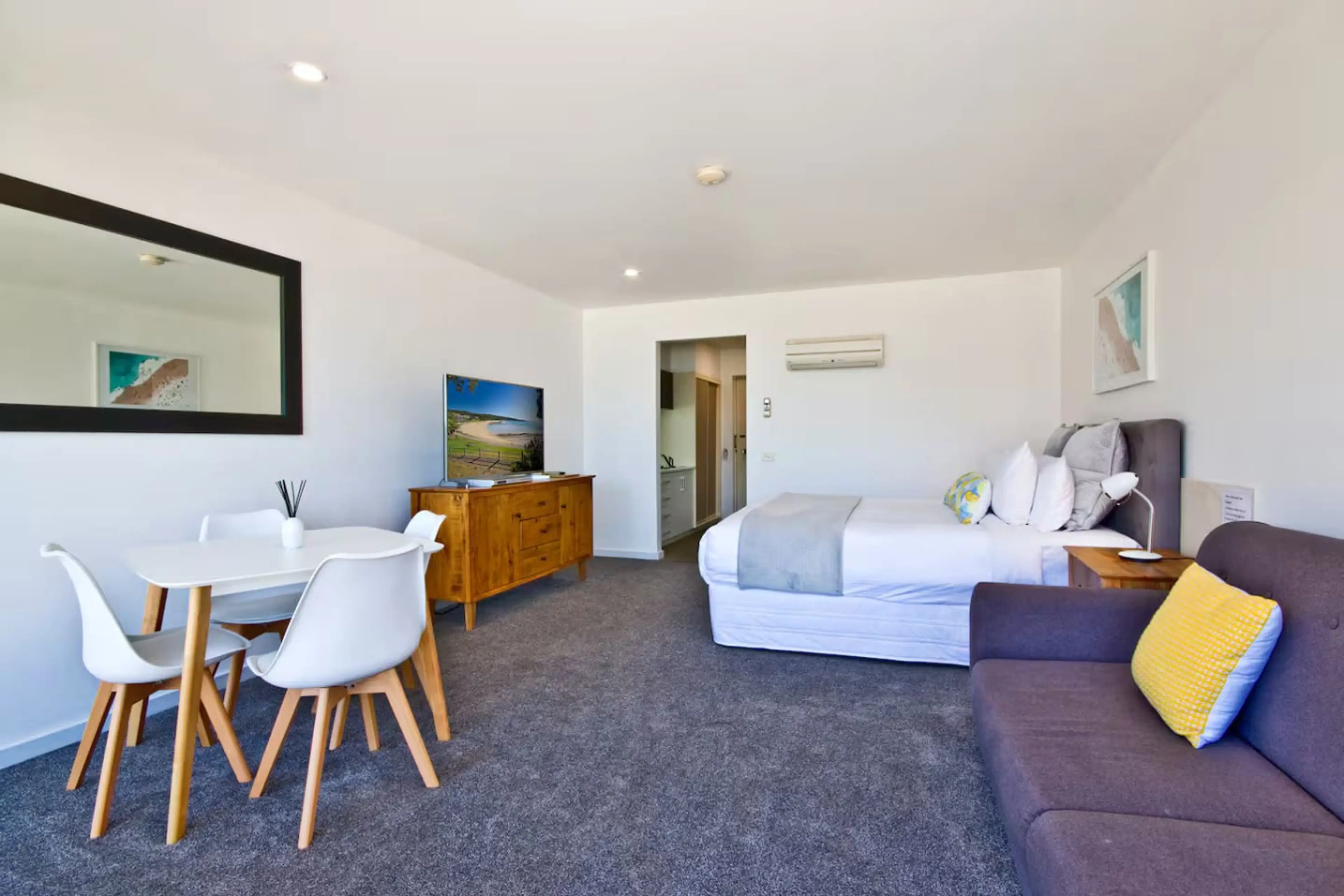 Located at the Bay View Motel. Enjoy glimpses of the beautiful Louttit Bay from your private balcony with the glorious morning sun streaming through the sliding doors. The studio features a queen-size bed, queen sofabed, bathroom with corner spa and equipped kitchenette including microwave. There ...